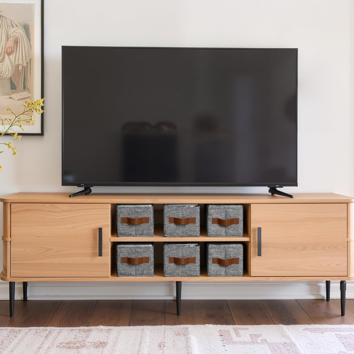 GRANNY SAYS Small Fabric Storage Bins with PU Handles, Storage Baskets for Shelves, Toilet Paper Storage, Narrow Baskets for Organizing DVD, Photos, Clothes, Diaper, Sock, Cd, 6-Pack, Gray