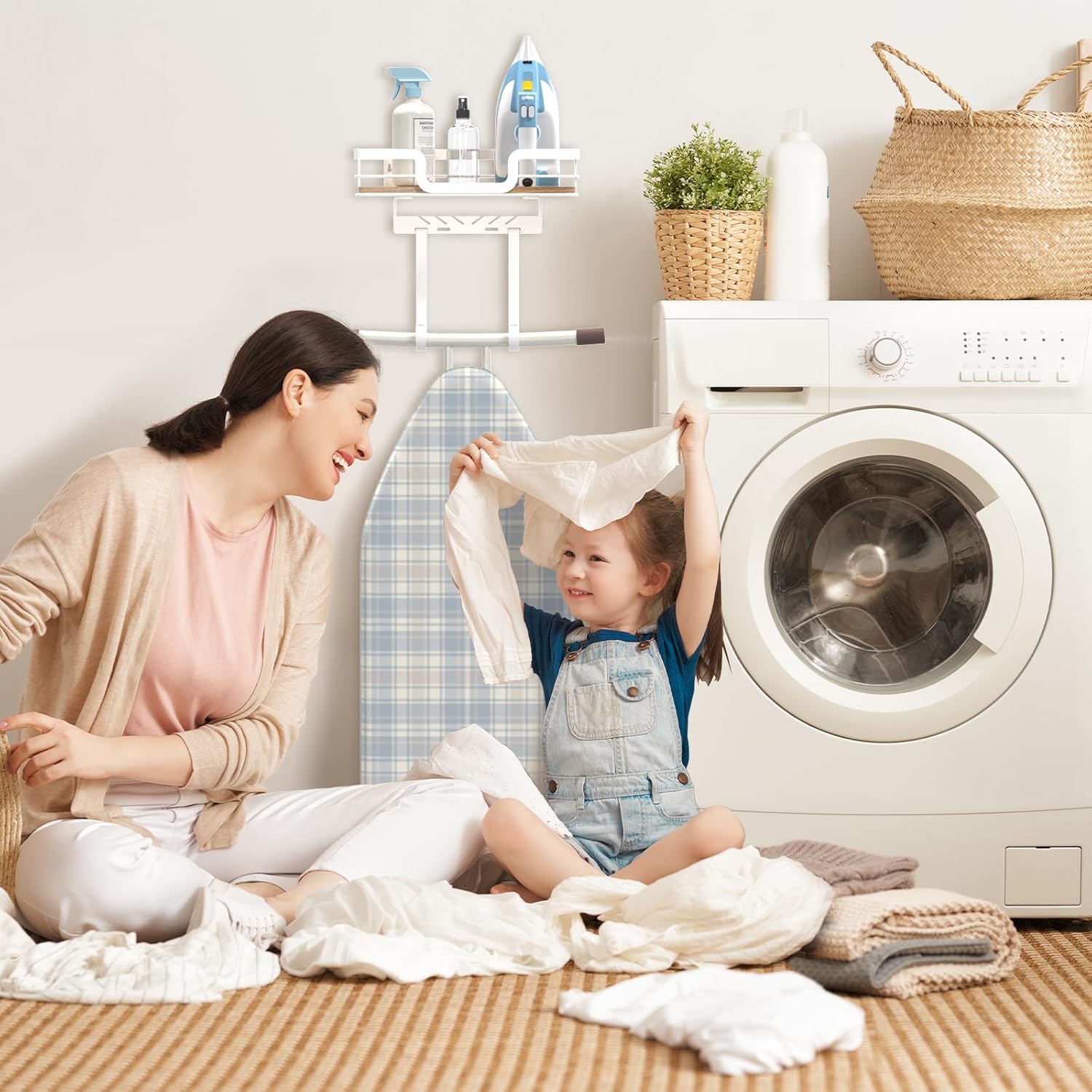 - MULTIFUNCTIONAL HOME ORGANIZER: This living room decor wall ironing board hanger wall mount is not only suitable for laundry room to store ironing accessories, but also for utility room, sewing room, bathroom, living room or entryway, etc. to keep your home organized.Great for laundry room decor.