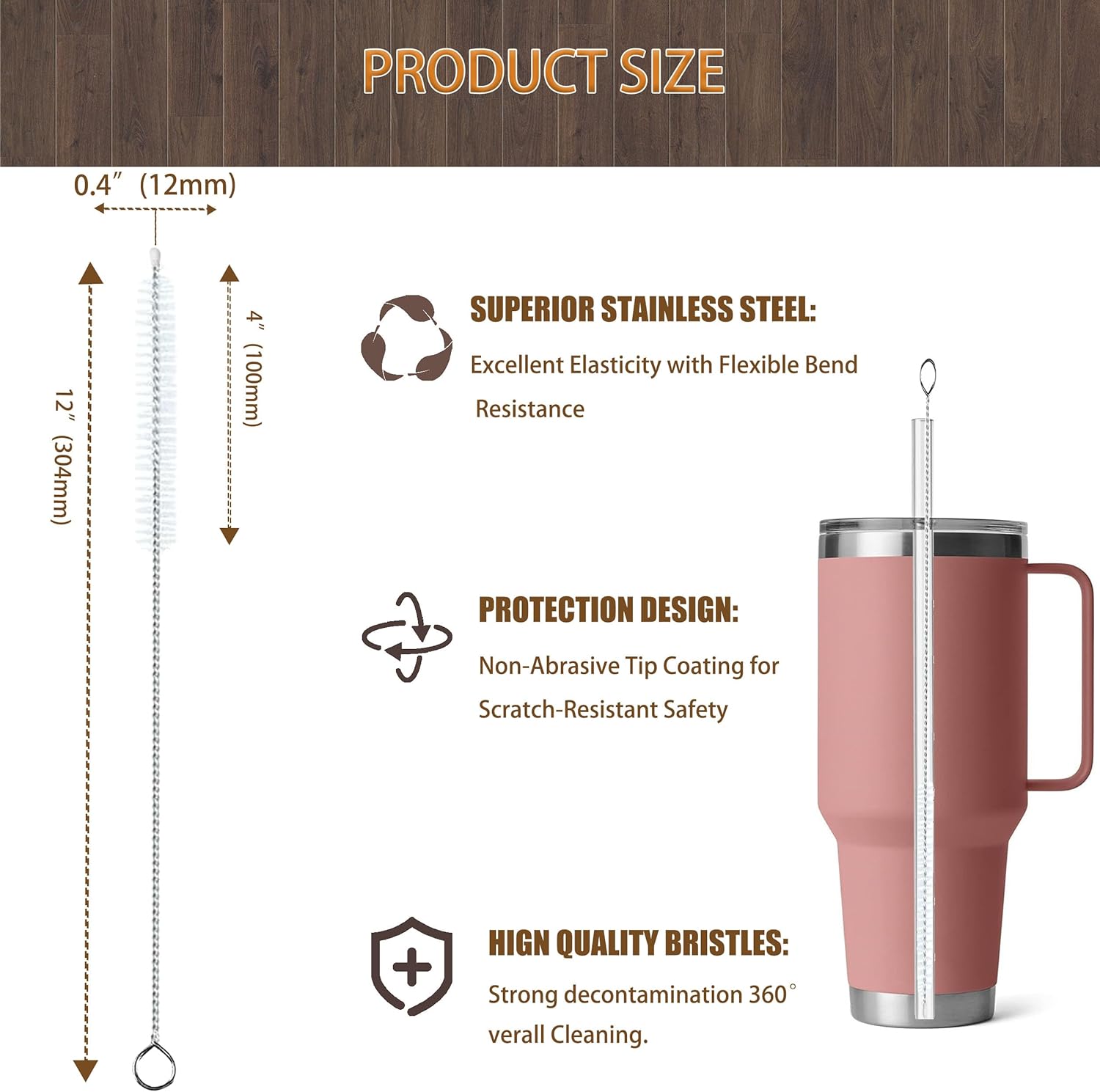 - 【8-Pack Heavy-Duty Tube Cleaning System】 Built for heavy use, this straw brush set includes a Straw Cleaner Brush Extra Long with 12 Inch (304mm) reach, paired with 100mm nylon bristles and a 12mm-wide design. Replace flimsy disposable bottle brushes and bulk pipe cleaners with these eco-friendly tools that tackle stainless steel straws, protein shaker balls, and keyboard crevices effortlessly. Outperforming standard brushes and bulky electric cleaners, the straw brushes for cleaning straws flex without bending, conquering narrow spaces where traditional tools fail.