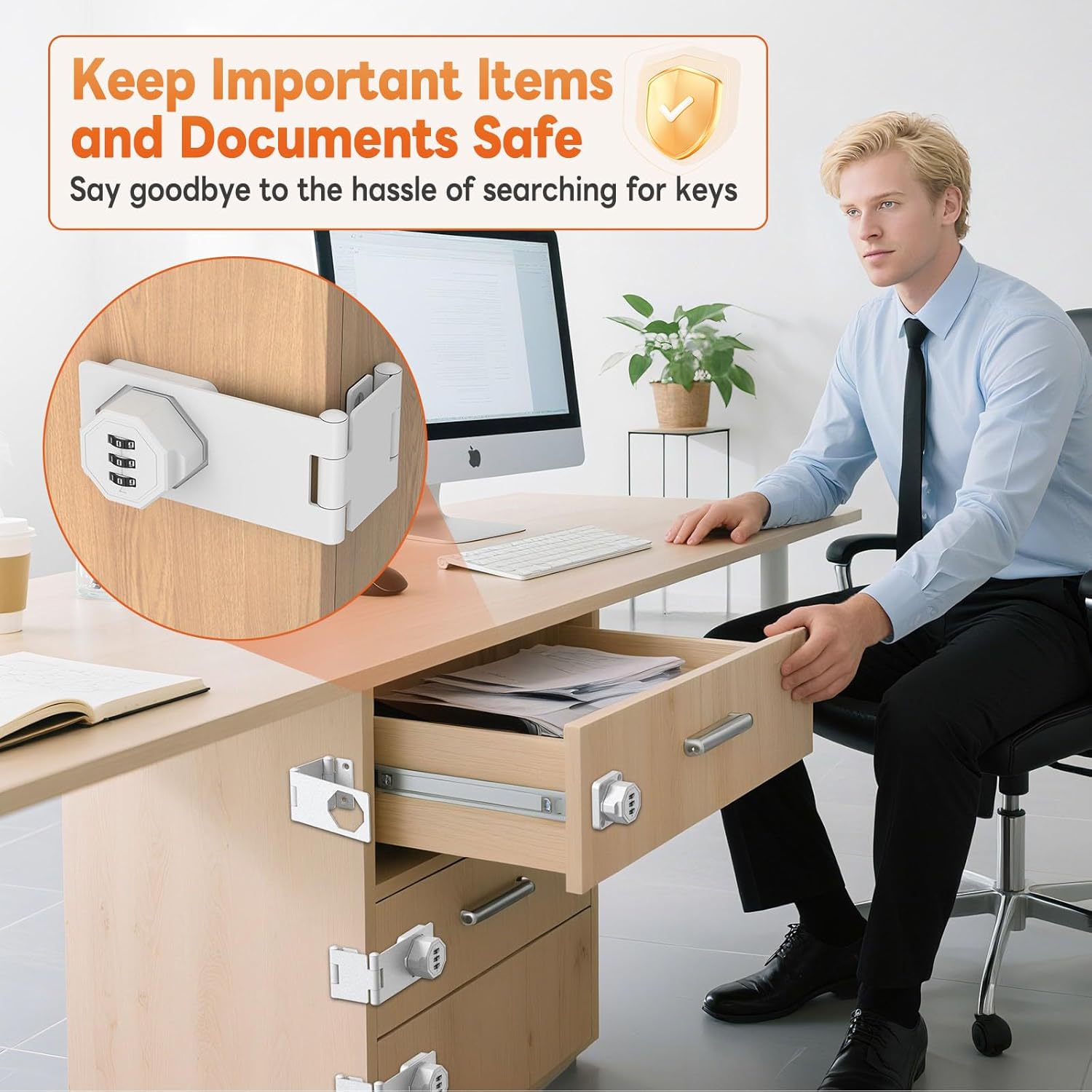 - Multi-Scenario Adaptation: This folding cabinet door lock is designed for 90° angle cabinets, support left & right bi-directional flexible installation, widely adapted to office filing cabinets, drawers, storage cabinets, safes, mailboxes, etc., to enhance the security level of different cabinets