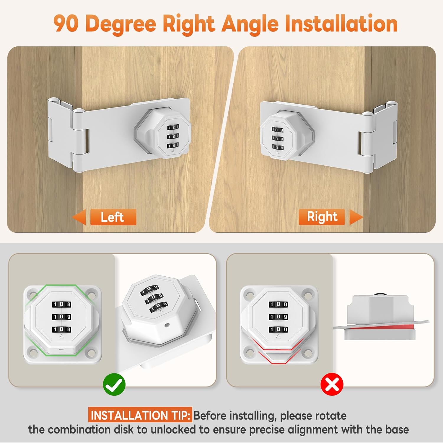 - Package Kit: Includes 1 x 90° cabinet lock with combination, 15 x screws, 8 x expansion tubes, 1 x installation manual, complete accessories, easy to install
