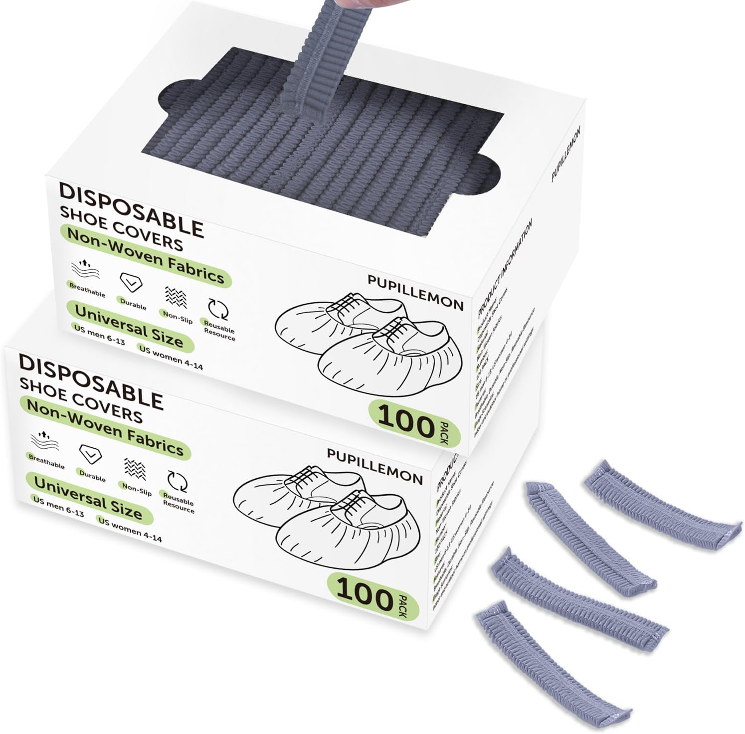 200Pcs(100 Pairs) Non-Woven Shoe Covers Disposable Non Slip for Indoors, Breathable | Durable | Boot Covers, Fits Up to Size 13 US Men (Gray)