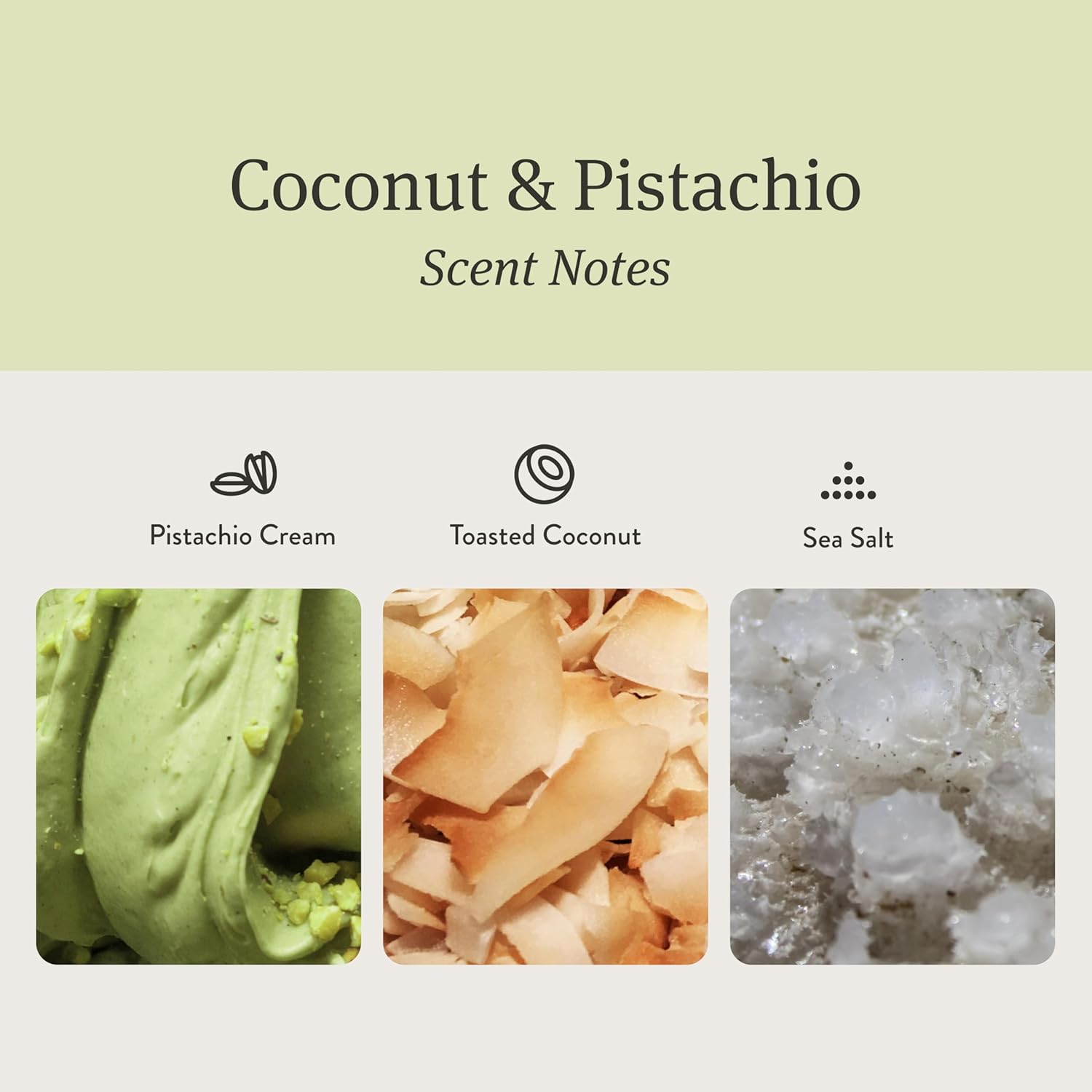 - Scent : Coconut & Pistachio