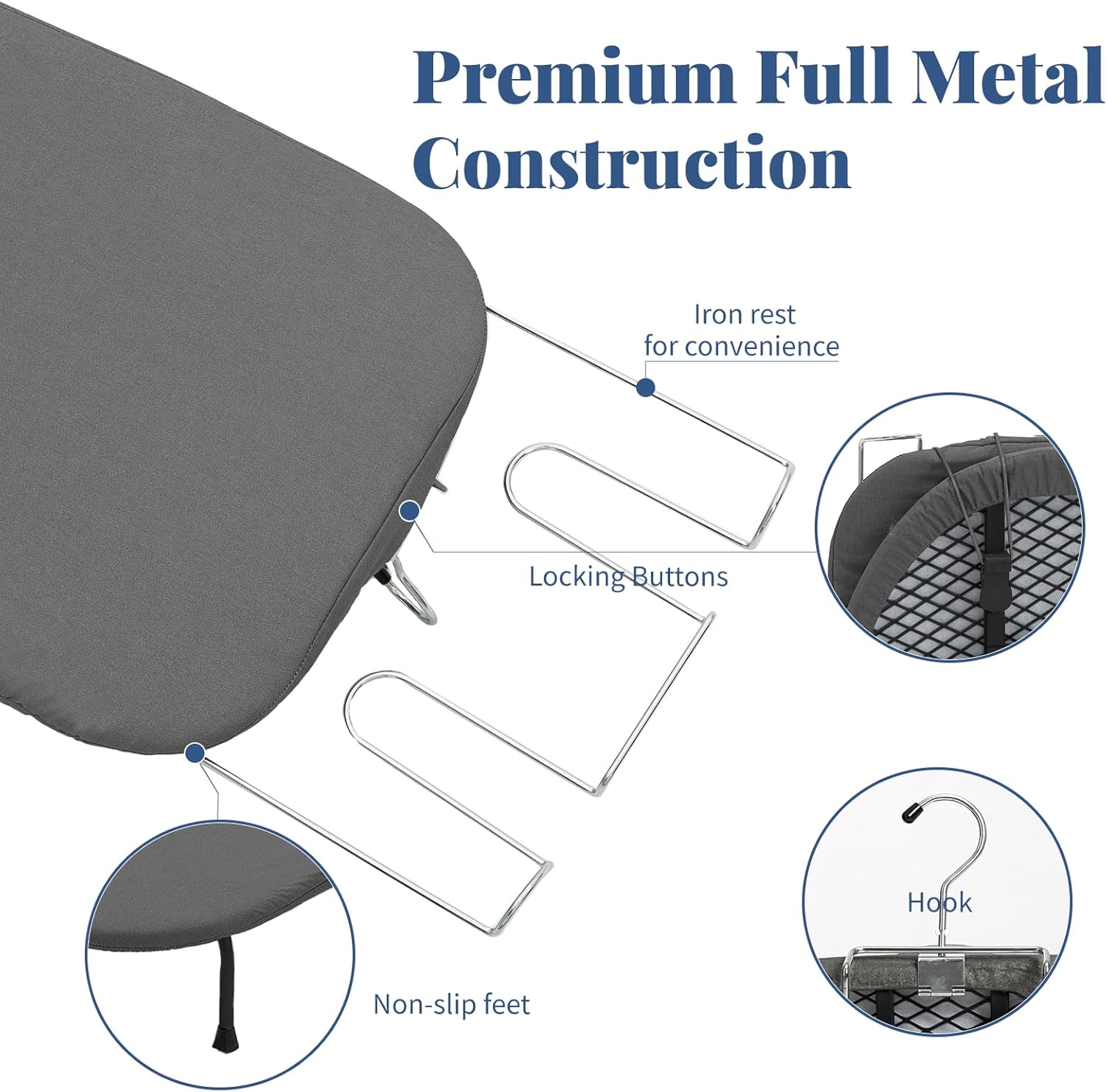 - Table Top Iron Board: RAINHOL ironing board small measures 32 x 12 x 4.7 in when expanded and 16 x 12 x 5.5 in when folded and weighs 4.2 lbs. Features a convenient retractable iron rest to keep your hot iron secure while ironing. NOTE: Product does not include iron