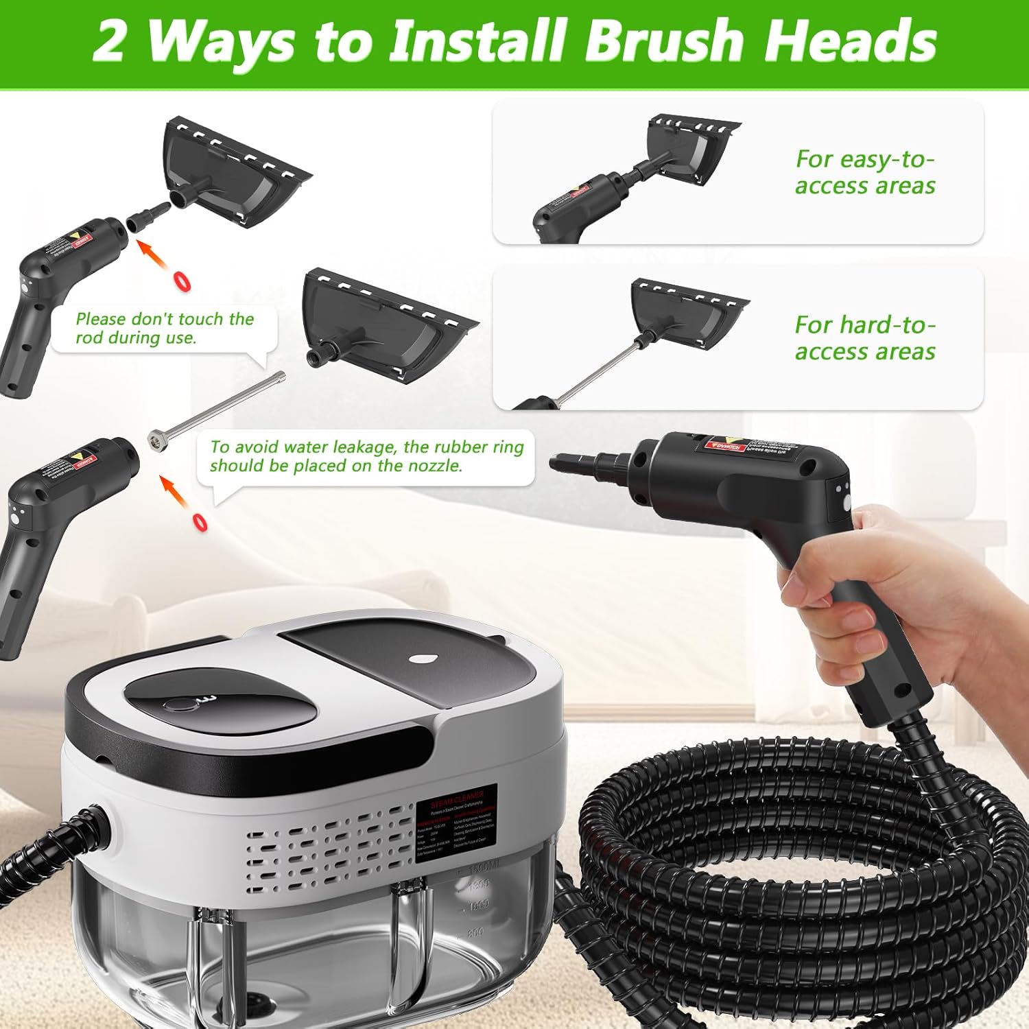 - 1.6L Large Capacity & 1 Hour Runtime: The upgraded 1.6L water tank of the steamer cleaner allows for up to 1 hour of continuous cleaning. This let you tackle stubborn grime on floors, furniture, beds, windows, gas stoves, range hoods and car seats without stopping to refill