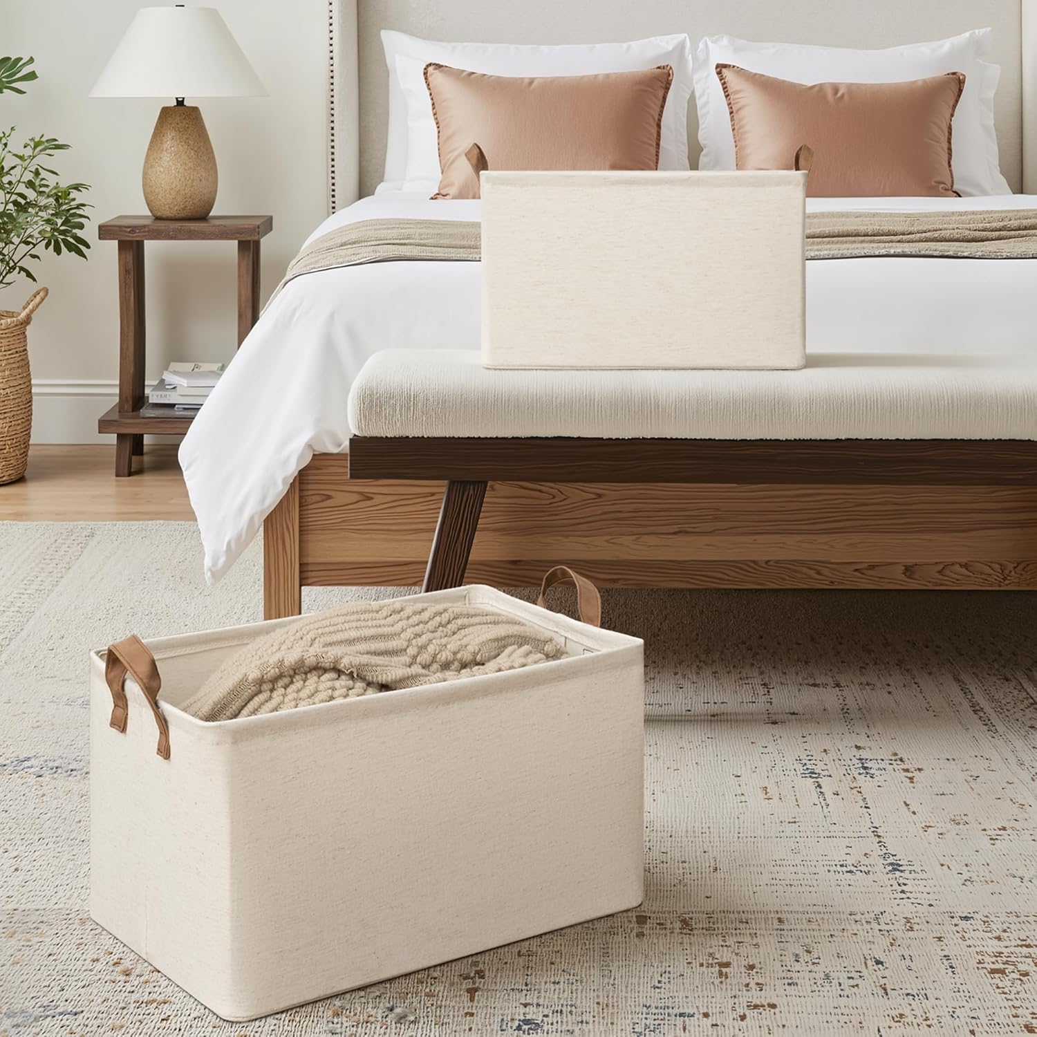 StorageWorks Storage Bins, Shelves Baskets for Organizing, 45L Extra Large Fabric Closet Organizers with Handles, Metal Frame, Beige(Cotton-linen), 2-Pack