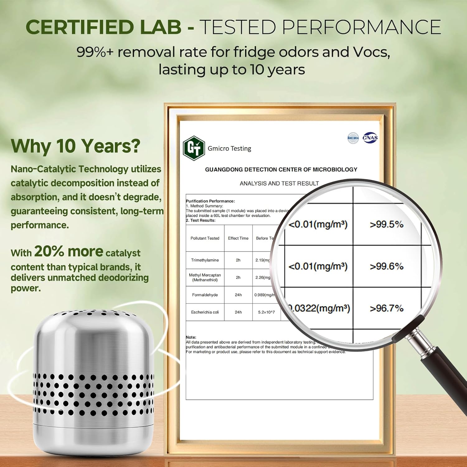 - ๐๐ฉ๐ ๐ซ๐๐๐๐ ๐๐๐ง๐จ ๐๐๐ญ๐๐ฅ๐ฒ๐ญ๐ข๐ ๐๐๐๐ก๐ง๐จ๐ฅ๐จ๐ ๐ฒ - No more lingering fridge odors. Powered by an advanced nano-catalyst, our fridge deodorizer actively breaks down harmful VOCs and neutralizes odor molecules at the sourceโeliminating smells instead of just absorbing them.