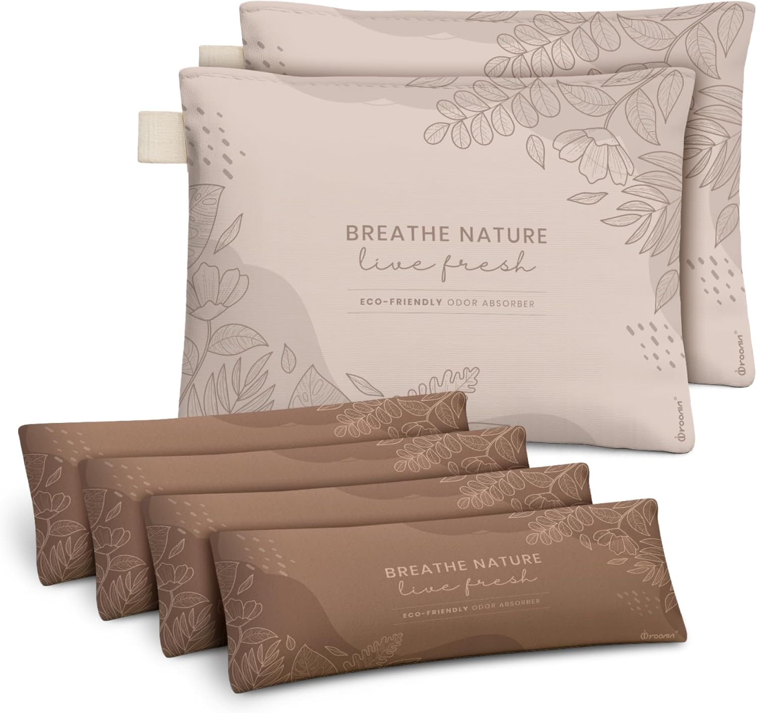 - NATURAL ODOR ABSORPTION TECHNOLOGY: – Harness the power of bamboo charcoal bags to naturally purify your living spaces. This advanced odor absorber targets moisture and bad smells at the source—perfect for closets, cars, bathrooms, shoe racks, cat litter boxes, cabinets, and even the basement.