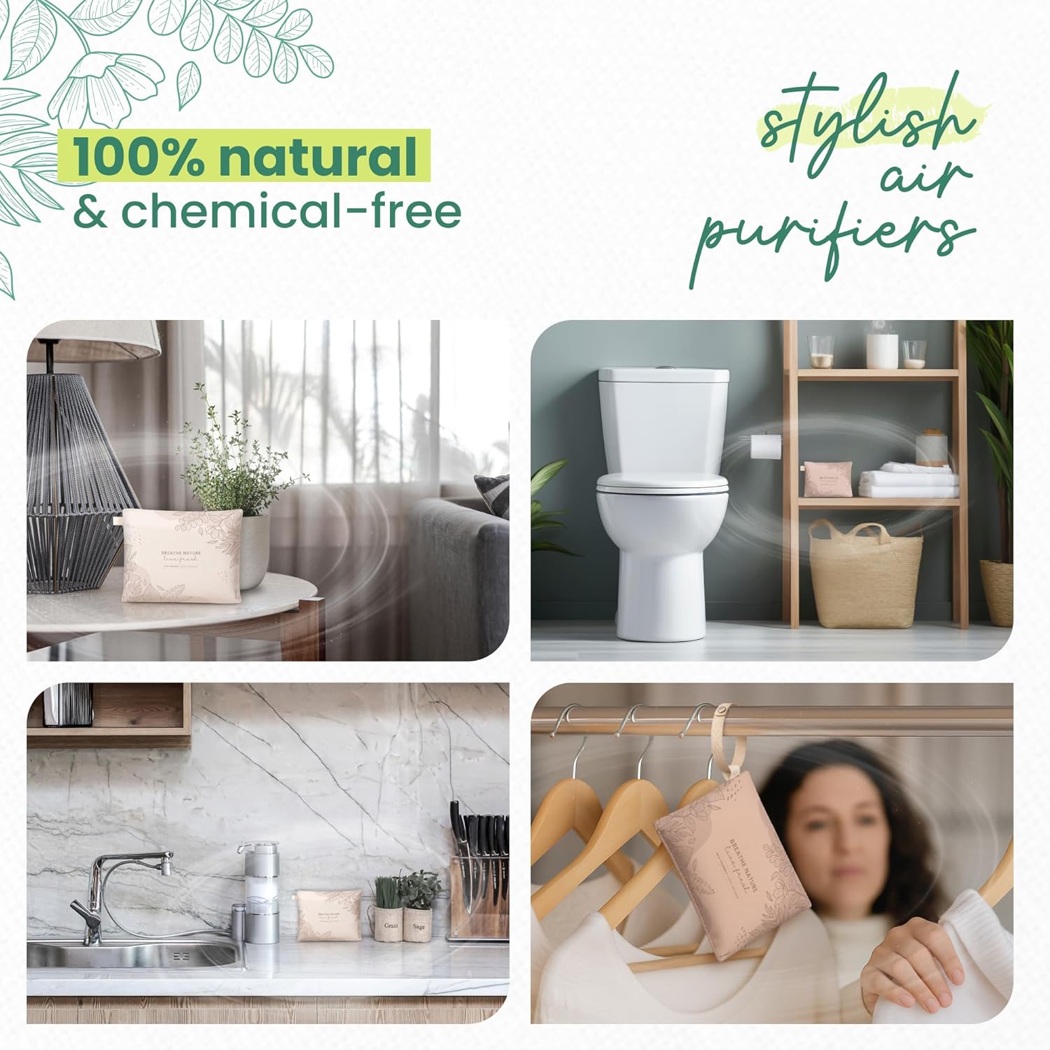 - STYLISH AIR PURIFIERS – Designed to blend seamlessly into any space, our charcoal deodorizer bags offer powerful freshness with a clean, modern look. Use them as a car charcoal odor eliminator or place them in your home to eliminate odors effectively