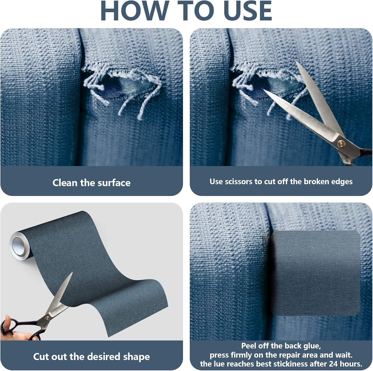 - EASY TO USE: Just peel the fabric adhesive patch backing paper then stick repair patch on holes, rips and stains in linen or canvas fabric couch, car seats or other fabric product. It only takes a few seconds to complete the maintenance work.