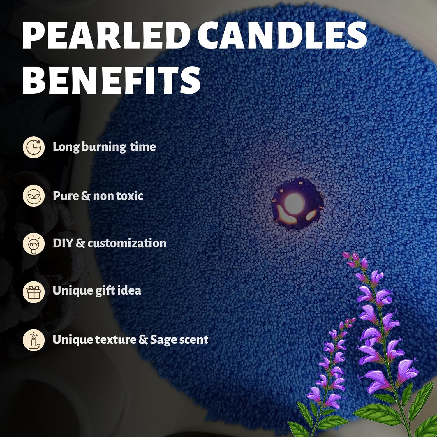 Salvia Scented Blue Pearled Candle 18oz Luxury Sand Candle Granulated Wax - 30 Cotton Wicks - Wax for Candle Making Decorative Candles Smooth and Clean Burning Lasts up to 120 Hours