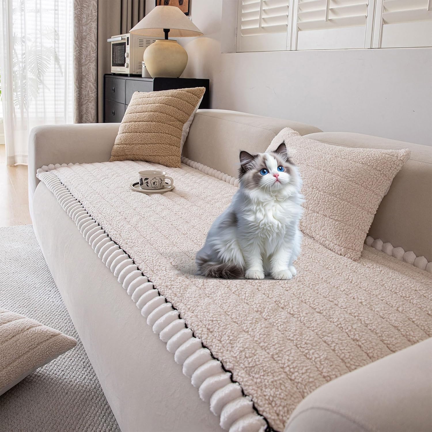 OTOB Couch Cover for Dogs Washable, Non Slip Plush Fuzzy Sofa Covers for 3 Cushion Couch All Seasons, Kids Pet Friendly Soft Cozy Furniture Protector Sofa Slipcovers (Beige, 27.6" x 82.7")