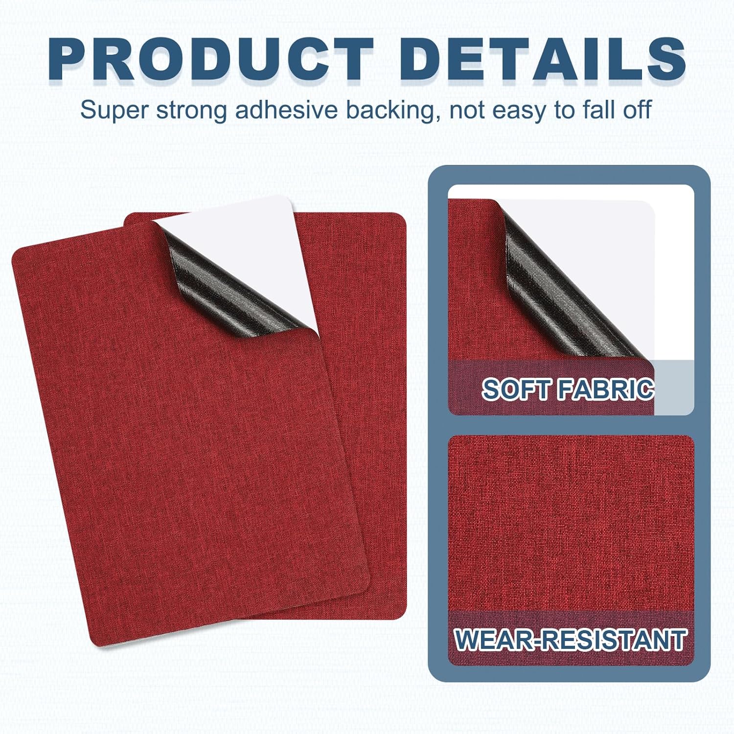 - Color: Red; Material: Linen; Size: 280 x 205mm / 11 x 8 inch(L*W); Packing List: 2 x Fabric Patches Self Adhesive