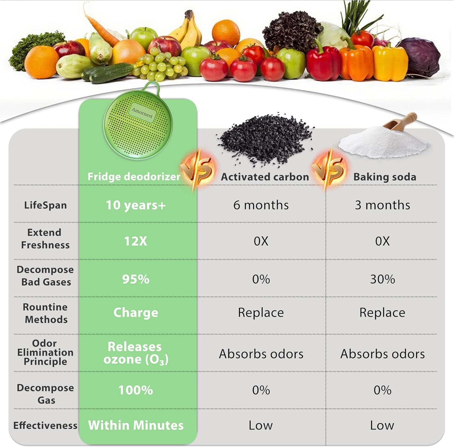 - ✨【Advanced Ozone Oxidation Technology】Experience the power of the latest odor elimination technology! Our refrigerator deodorizer utilizes ozone oxidation to actively break down odors at the molecular level—converting formaldehyde, VOCs, and other harmful gases into harmless water and carbon dioxide. Compared with CH-CUT Honeycomb techonlogy, it will eliminate odor quickly and edffectively within just minutes.