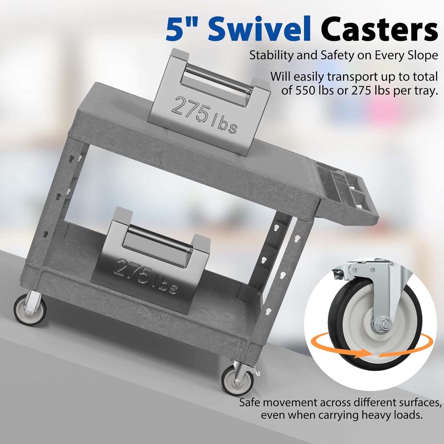 - Effortless Mobility: Equipped with 5-inch swivel casters, allowing smooth and easy movement across different surfaces with minimal effort.