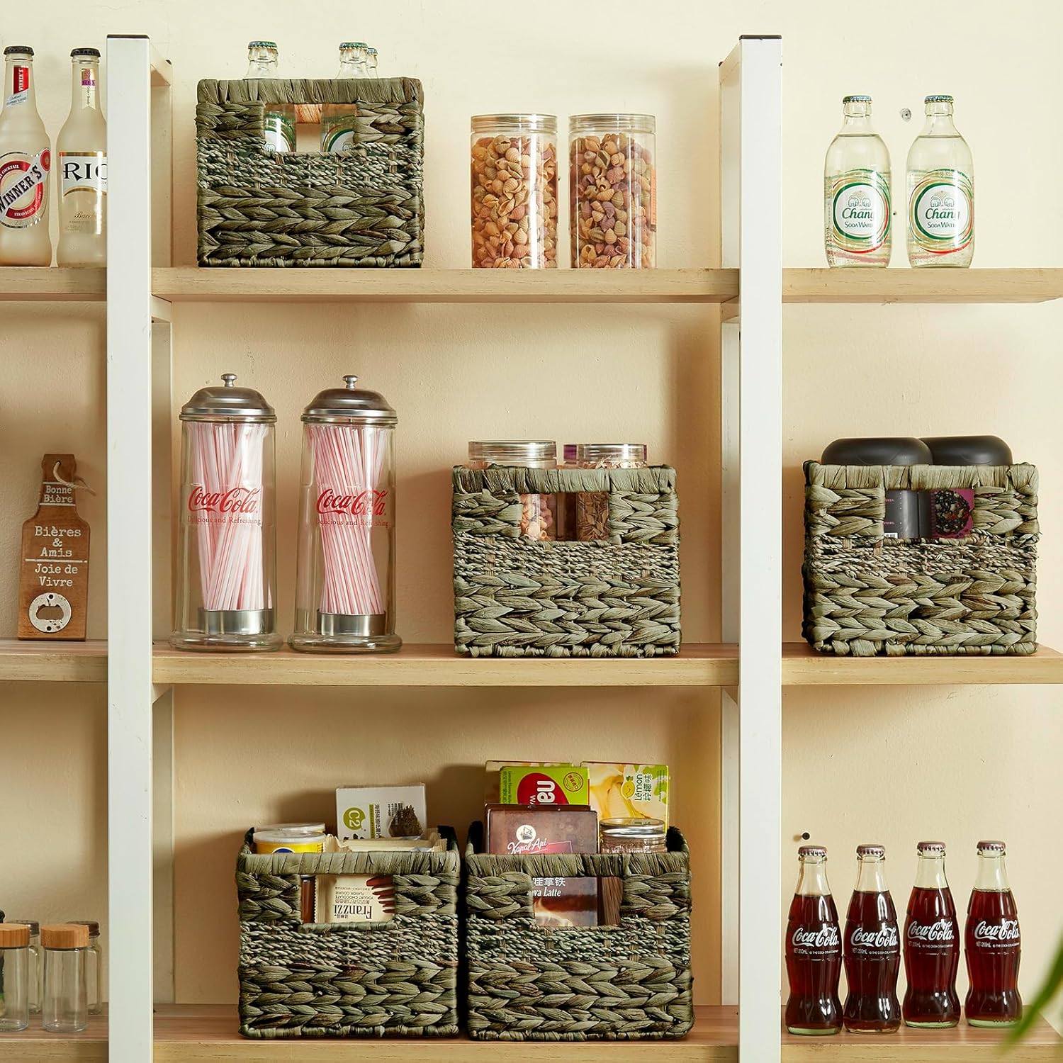 - Renewable Materials: Pantry organizers and storage crafted from a blend of water hyacinth and seagrass on a metal fram, harmonizes strength with organic texture. The 100% natural materials of woven basket ensure a guilt-free purchase, while the artisanal woven pattern adds rustic elegance to modern or minimalist spaces.