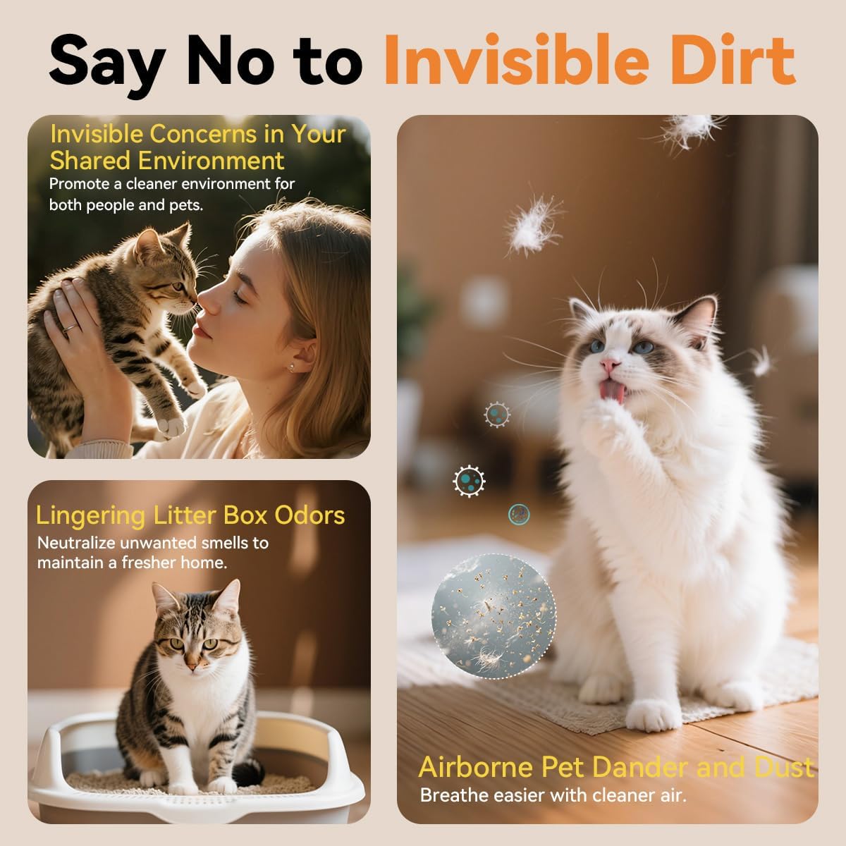 - 🍃Five-Stage Effective Filtration. It’s equipped with 5-layers filter system from bottom to the top. The micro-electrostatic field capture tiny particles. The pre-filter screen captures large particles like hair, fur, cloth fibers etc. The activated carbon layer helps absorb formaldehyde and odors. The HEPA filter removes fine particles like PM 2.5 and pollen. The negative oxygen ions are beneficial for adsorbing invisible tiny dust and helpful for reducing the survival rate of harmful substances, making tiny particles nowhere to hide.