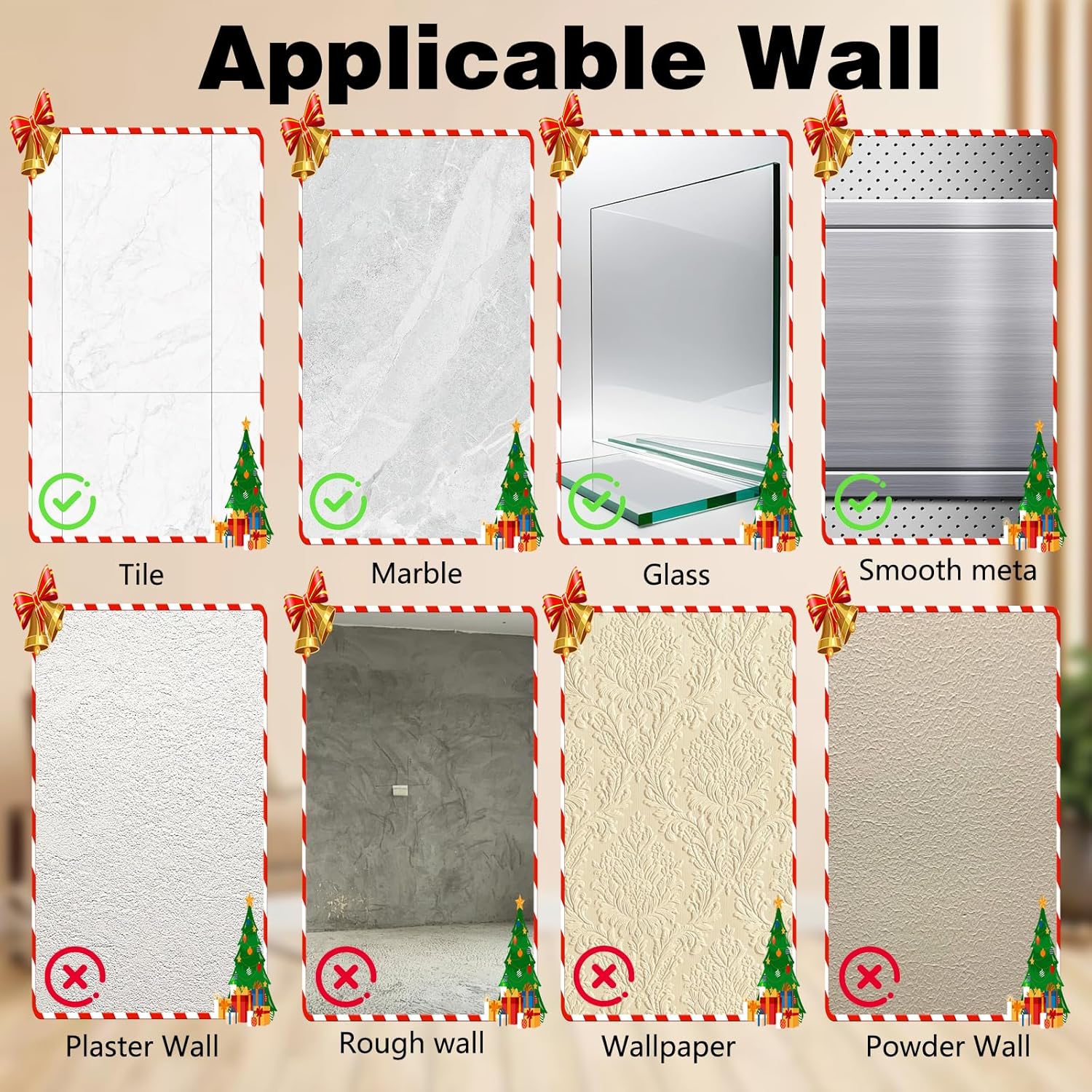 - [Multi-Purpose Hooks] These suction cup hooks are perfect for bathrooms, kitchens, bedrooms, and holiday decorations, whether you need a wreath hook for a door frame or a stylish seasonal wreath hook for your door. They adhere securely to glass, tile, mirrors, and other non-porous surfaces