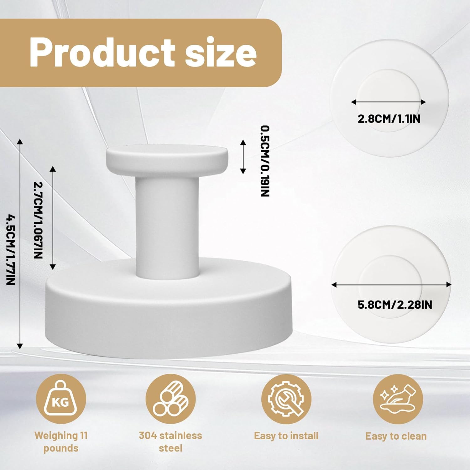 - 【Sleek and Space-Saving Design】 With a compact 5.5 cm size, this elegant hook not only saves space but also adds a modern touch to any room. Ideal for bathrooms, bedrooms, kitchens, or offices, it complements various decor styles while keeping your belongings tidy.