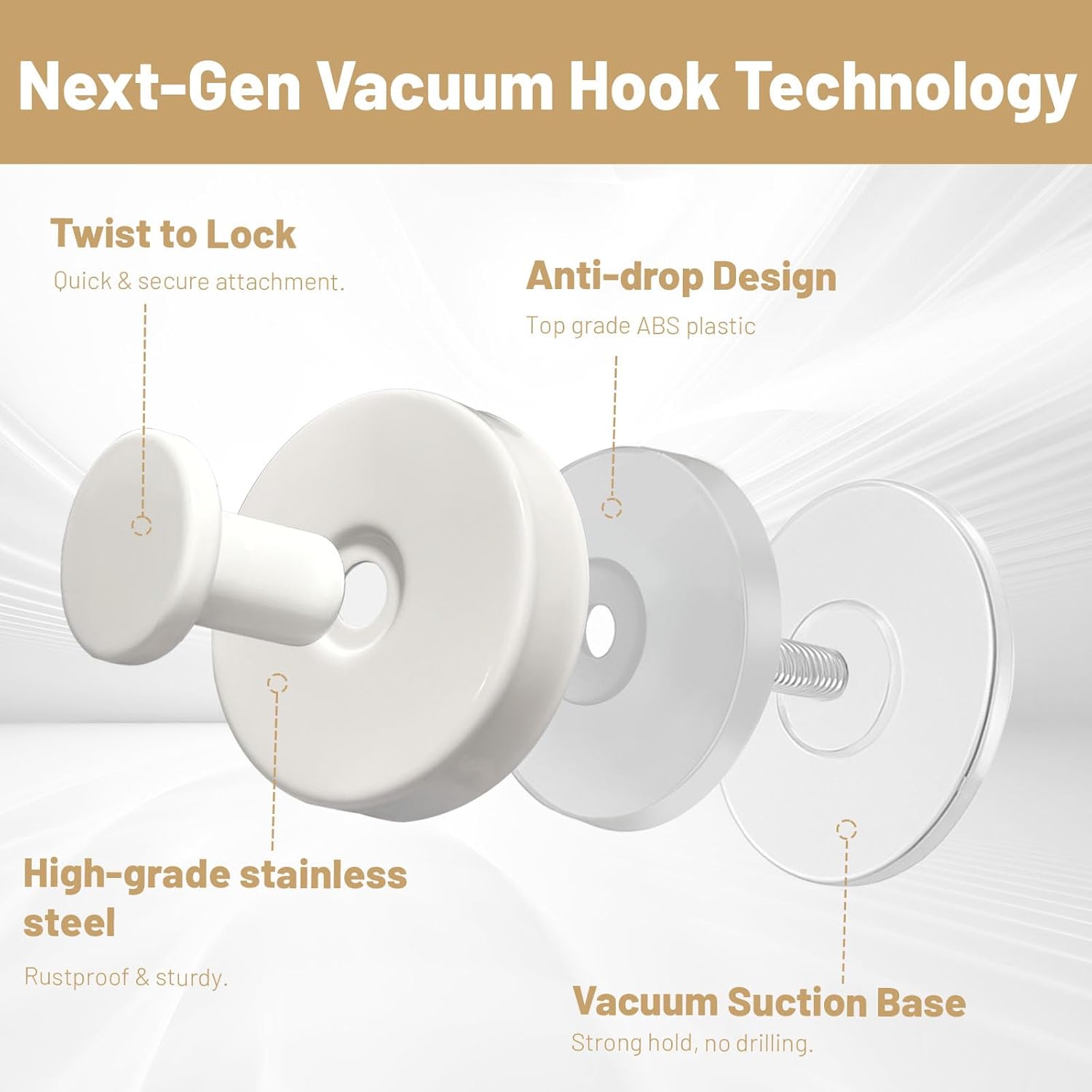 - 【Premium Quality Materials】 Suction Cup Hooks paired with top-quality PVC suction cups, this hook is rustproof, waterproof, and resistant to moisture and vapor. Built to withstand daily bathroom wear and tear, it guarantees lasting performance and easy maintenance.