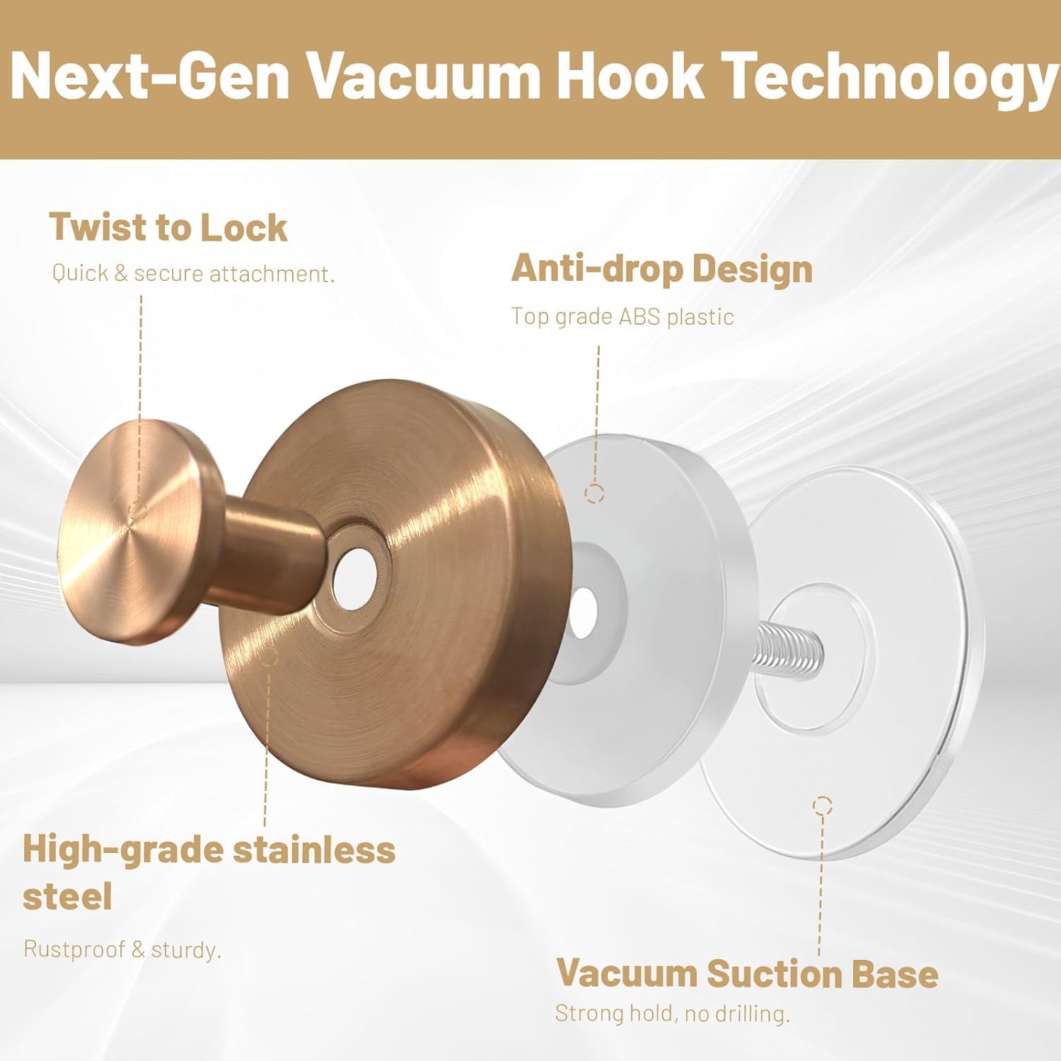 4pcs Suction Cup Hooks for Shower,Shower Towel Suction Hooks,No Drill Towel Hooks for Bathroom Wall,Kitchen,Glass,Mirror,Tile to Hang Towels,Robes,Loofah (Rose Gold)