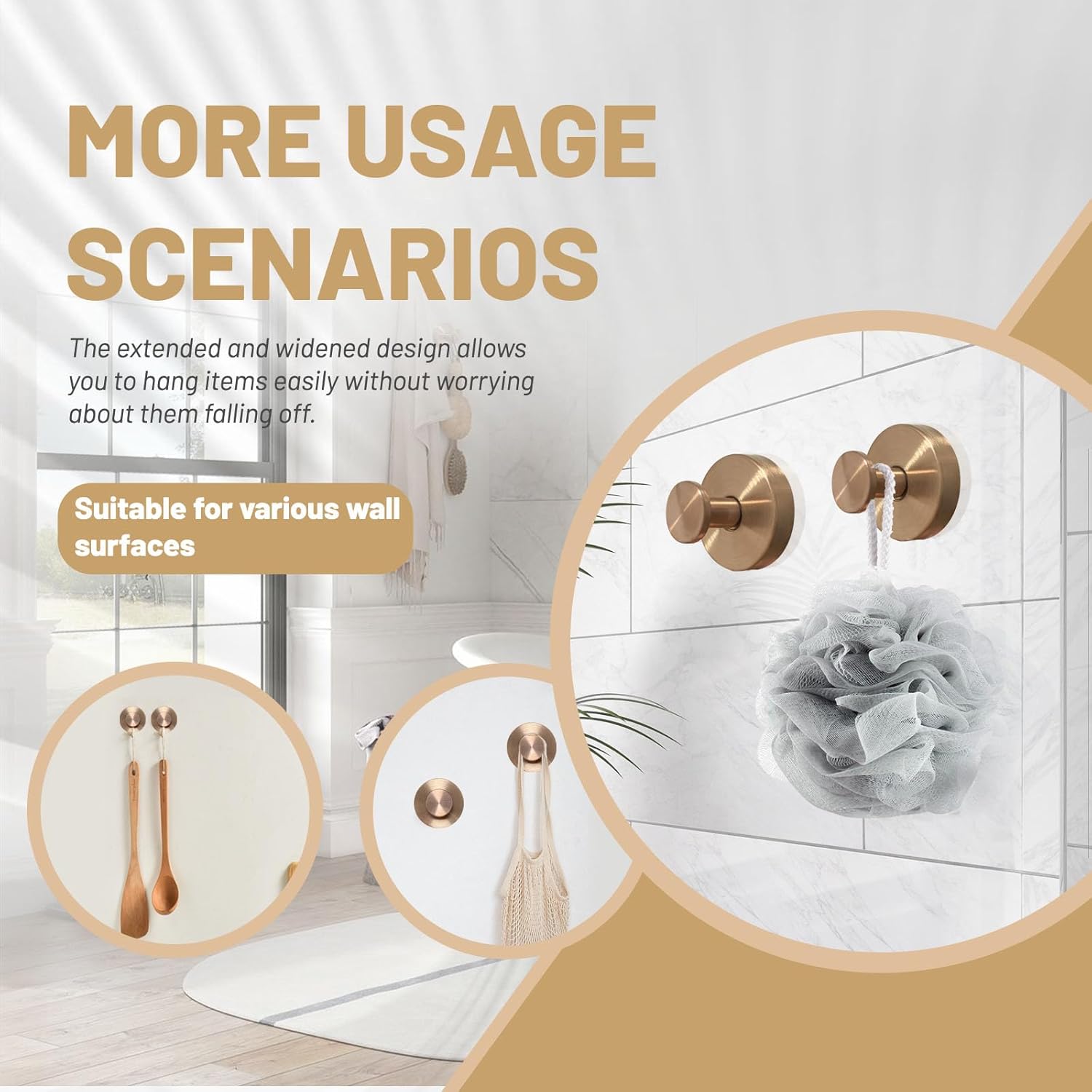 - 【Strong and Reliable Suction Power】 Featuring advanced vacuum adsorption technology, these bathroom hooks securely attach to smooth surfaces like bathroom tiles and glass doors, ensuring a firm hold for long-lasting use without slipping or falling.