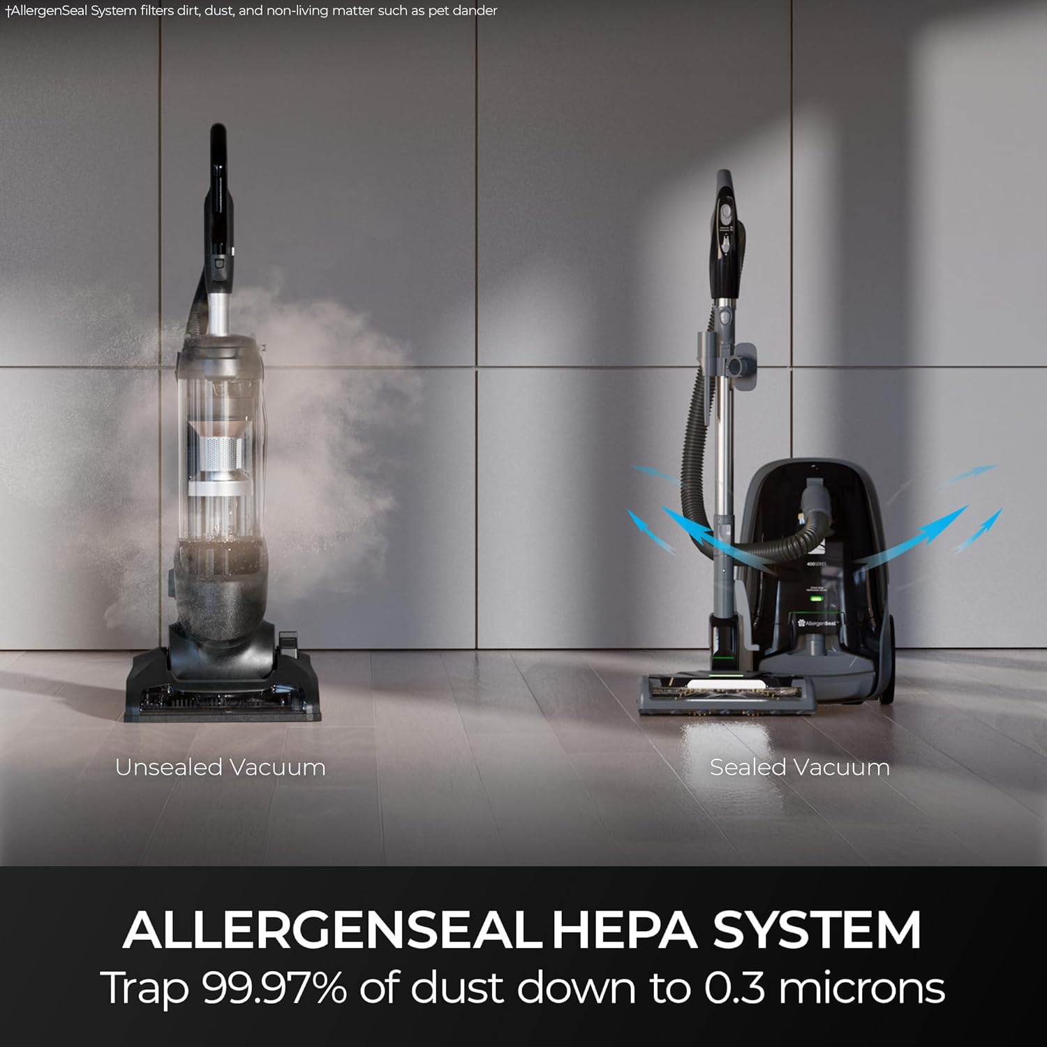 - Completely Sealed Air Path: Traps 99.97% of dust down to 0.3 microns inside your vacuum, keeping them out of the air you breathe